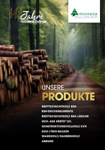 7 1913 Mit demKauf der Dorfmühle in Hüttlingen, an die ein Sägewerk angeschlossen war, begann die Bullinger Historie. 1993 Durch den Kauf des ehemaligen Häuserwerkes inWerder bei Neuruppin öffneten die Holzwerke Bullinger GmbH&Co. KG im Juli 1993 ihre Tore am neuen Standort. 1997 Es wurde mit dem Aufbau einer Produktionsanlage für Konstruktionsvollholz begonnen. 2001 Sortieranlage mit maschineller Festigkeitssortierung in Neuruppin zur Erweiterung des Exports. 2018 Duo undWandholz wird ins Sortiment mit aufgenommen um dadurch Komplettanbieter für Konstruktive Hölzer zu sein. 2012 modernste Anlage für BSH Listen in Neuruppin. 2013 modernste Anlage für KVH in Abtsgmünd. 2019 Erweiterung des Serviceangebots umAbbundleistung durch 2 moderne Abbundanlagen. 2023 30 Jahre Bullinger Standort Neuruppin. Eigenproduktion Bullinger Pellets startet. IM VERBUND ARBEITEN DERZEIT RUND 200 MITARBEITER BEI BULLINGER UND VERARBEITEN JÄHRLICH ÜBER 250.000 KUBIKMETER SCHNITTHOLZ ZU PRODUKTEN FÜR DEN KONSTRUKTIVEN MODERNEN HOLZBAU NEURUPPIN Holzwerke Bullinger GmbH + Co. KG Produkte: BSH und Brettstapeldecken, GLVL aus Kerto® LVL Holzwerke Bullinger Export GmbH Produkte: BSH, Beams ( Japan) ABTSGMÜND Xaver Bullinger GmbH + Co. KG Produkte: KVH/Duo/Trio und BSH Holzwerke Bullinger Verpackungstechnik GmbH + Co. KG Produkte: Holzverpackung, Kisten, Schnittholz 2021 BSH Produktion in Abtsgmünd startet. 2024 111 Jahre Holzwerke Bullinger. 2023 STANDORT NEURUPPIN